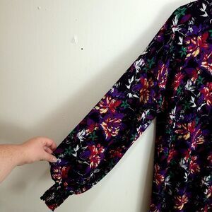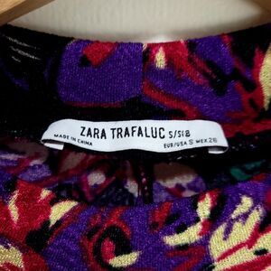 Lovely mock neck floral dress from Zara's Trafaluc line with a loose bishop sleeve gathered at an elastic gathered cuff. Stretchy soft comfy fabric just goes over the head no zippers or buttons. Great for autumn winter over black tights or leggings. US size Small with lots of stretch. Excellent preloved condition no stains or tears.