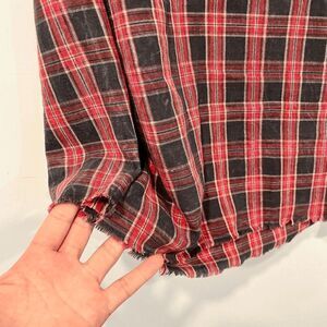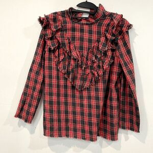 Zara Women's Gingham Tiered Bib Long Sleeves Mock Neck Top Red/Black Size M