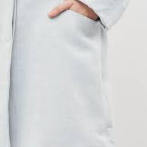 In very good condition. Zara light blue linen blend coat. Blazer style with a v-neck and hidden button closure. This coat is fully lined and is a great layer for spring. Viscose, cotton and linen blend. This coat is great for business casual wear. Flat lay measurements: 19" pit to pit, 35" length.