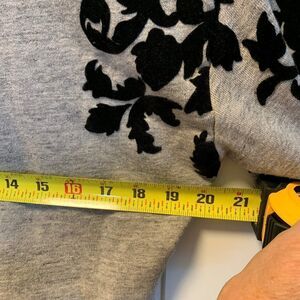 Zara cropped, loose, classic heather grey sweatshirt with laser cut black velvet applique detail. Size small in excellent used condition with no stains, wear or damage detected. No fabric content label but appears to be cotton poly blend. Tough girl chic worn with skinny distressed jean and moto inspired jacket, or keep it easy with your favourite sweat pants. Pretty enough for streetwear or casual Friday workwear, especially with short flirty skirt. Layer up with a few complementing pieces from Our Closet (some suggestions shown all listed and priced separately) for a new spring look styled your way. You can get Fresh, with Lemon Squeezy Shop🍋