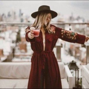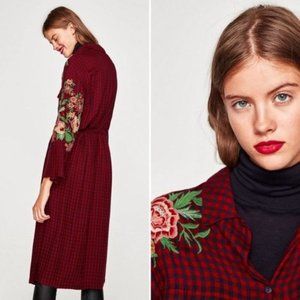 Zara TRF Duster Flannel Tunic Embroidered Dress