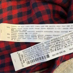 Zara trf Duster Tunic Dress Red Navy Plaid Embroidered Floral Belted size XS