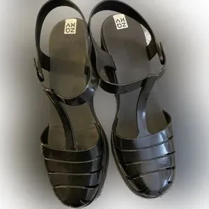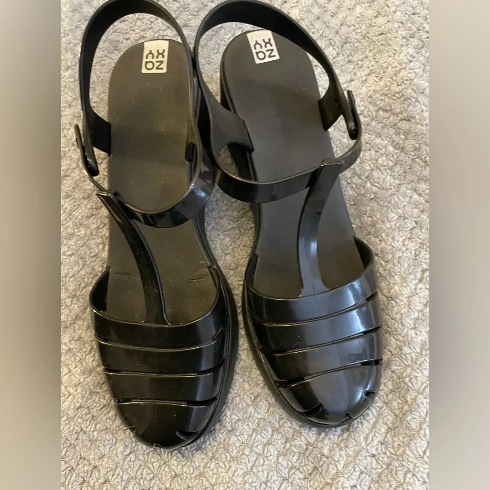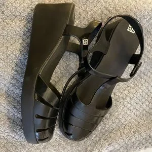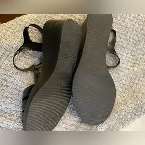 black rubber wedge, heel is 3’ very comfortable I just never wore them ☹️💕
