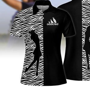 Zebra Pattern Golf Addicted Women Short Sleeve Polo Shirt