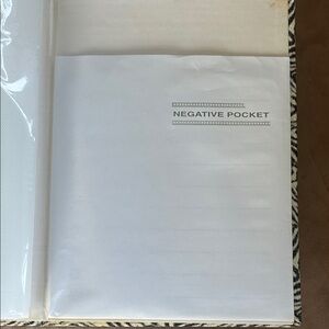 Save your photos in this zebra pattern photo album. Holds 200 photos and has a negative pocket at back. There is some discolouration inside cover from manufacturer’s glue. Binding and part of the back is also discoloured/faded. Never used.