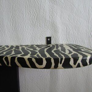 Small wall shelf sut with an organic shape custom painted with a zebra pattern