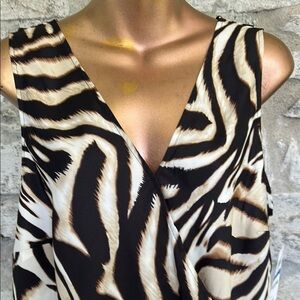 Stylish zebra print sleeveless faux wrap top with vibrant accents. Perfect for a bold, fashionable look. See matching skirt. Purchased in US$.