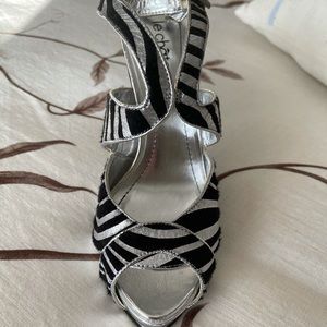 Zebra heels by le chateau. Fuzzy black stripes, buckle straps, never worn , still with tag . Size 8