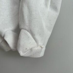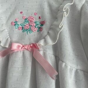 Zeddy sleeper with feet. Very lightweight. White with beautiful flower accents on the front and a ribbon bow. Polyester.