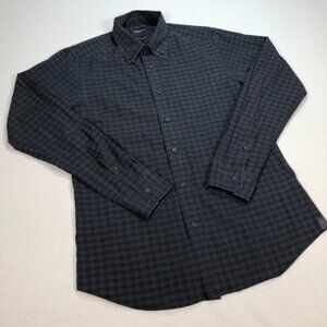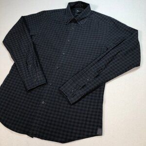 Zegna Sport Black Watch Shirt Men's M Black Brown Gingham Plaid Twisted Cotton