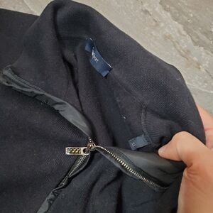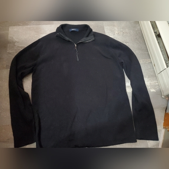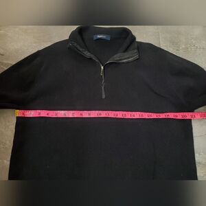Zegna Sport Men's Quarter-Zip (1/4) Black Ribbed Stretchy Long Sleeves Sweater. Collar. Size XL, see pictures for measurements. Fitted fit. Some fading at the front and back as seen on pictures. No rip, no hole. Non smoking house.