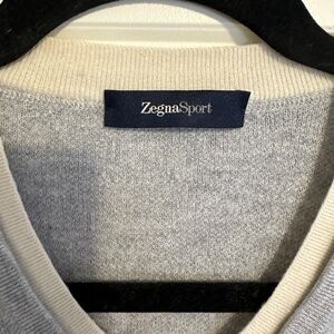 Zegna Sport Men's Sweater, Grey/Cream, Size L (fits smaller), 70% cotton / 30% cashmere