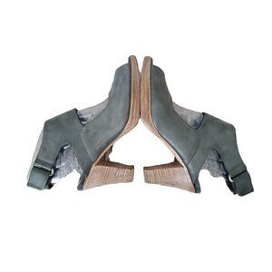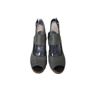Zeha Berlin gray nubuck leather peep toe ankle strap heeled sandals