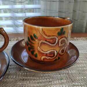 Zell am Harmersbach Large Cups and Saucers Set of 2 VTG Toscana Pottery German