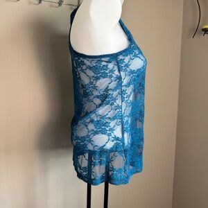 Zenana Outfitters Women's Sheer Lace Tank Top Blue Size M Layering Festival