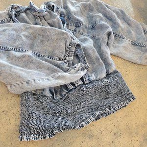 Zenana Womens Denim Cropped Cuntry Style Blouse Shirt Size Medium