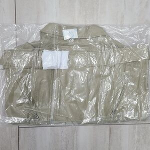 Zenana belted moto jacket - vegan leather - size large - khaki beige BNWT