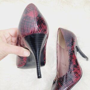 Zenia Pointed Toe Classic Slim High Heels Red Black Python Print Slip