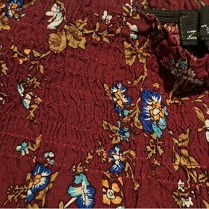 Zenobia women's size 3XL burgundy smocked top & short bell sleeve, floral NWT