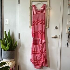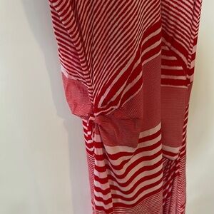 Zenobia-Bawas | Maxi Asymmetric Rouched White & Red Stripped Dress made in Italy