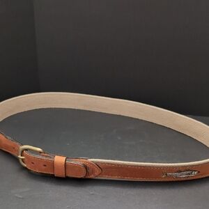 Zep-Pro ,Men's Tan/ Brown Leather/Woven Belt with Fish Details,Size 42.