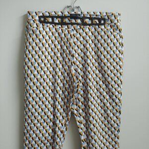 Zilch Amsterdam geometric pattern cotton tapered pants yellow grey white Large