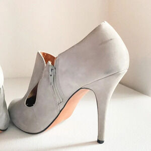 Zilian Light Grey Suede Unique Cut Out Detail Round Toe Heels 10