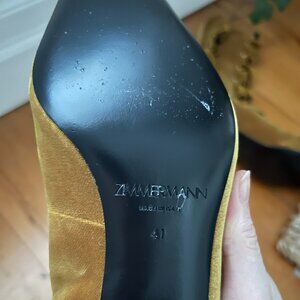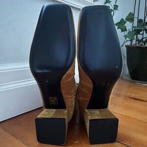 New without box: A brand-new, unused, and unworn. Zimmermann lace-up ankle-boots in black plush mustard velvet with a square-toe design and lace-up sides featuring a square block-heel. The inner side zipper makes them easy to slip on and off. Brand new.