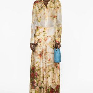 The Luminosity shirt showcases ZIMMERMANN's romantic vision. It's cut from linen and silk organza to a loose silhouette and drenched in the Rosy Garden Floral print – a motif depicting watercolour flowers atop a neutral background.