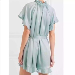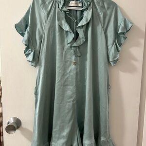 Excellent used condition. No flaws except is missing the belt. Size 0 but it’s oversized. I’m large and it fits me perfectly. Beautiful summer jumpsuit.