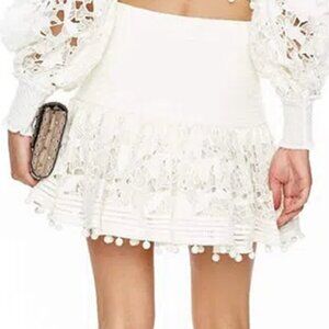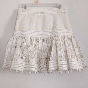 Zimmermann Corsage Pompom Embellished Guipure Lace Swiss Dot Tulle Mini Size 0