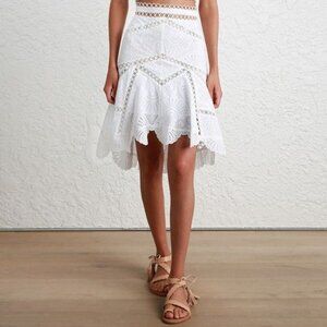 Zimmermann Mercer Fan High Low Skirt White Coastal Cowgirl b150