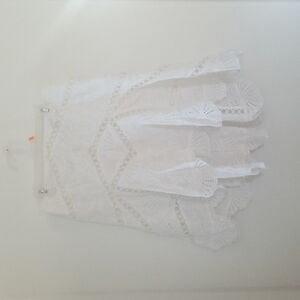 Holiday Ready: From Summer Swim 17, the Mercer Fan Skirt. Embroidery stitching detail throughout. Eyelet lace fabric. Hidden back zip closure.