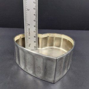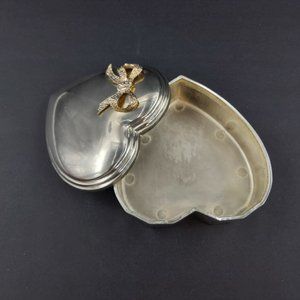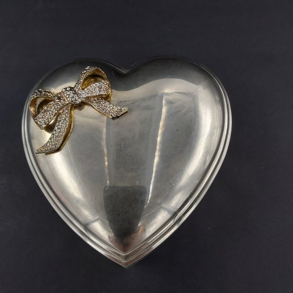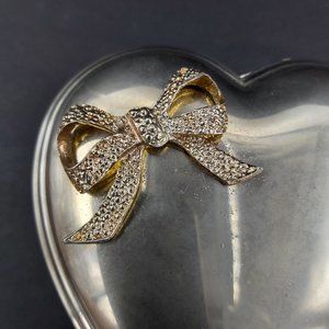 Zinc Alloy Silver Plated Heart Shaped Trinket Box with Gold Bow 4 x 4 x 2 inch