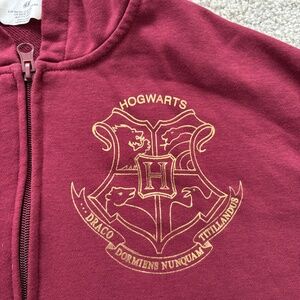 Maroon zip up thin hoodie with Hogwarts design on front and back