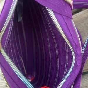 Made of one long zipper., clever design features one long zipper that can be fully zipped and unzipped. it's a bag and conversation starter in one