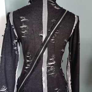 Jacket has two front zippers and one zipper on the back allowing the jacket to have various looks.