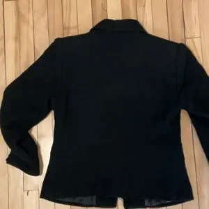 Black jacket with a zipper and zipped pockets. Easy to wear for a professional or elegant casual look (with jeans, skirt, etc.). No brand tag. Bought in France.