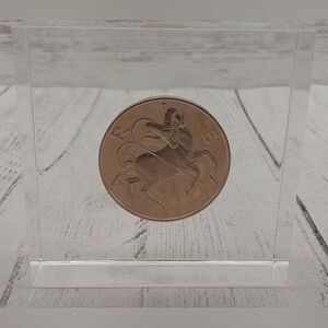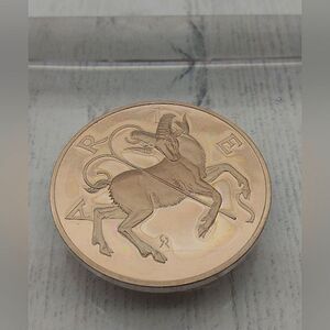 Zodiac Coin Medal Aries Gold-Bronze Lucite Paperweight Vintage Franklin Mint