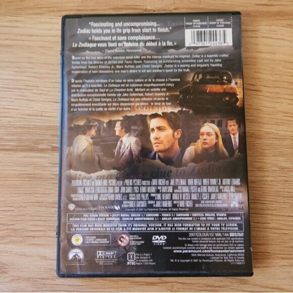 Zodiac DVD Movie Robert Downey Jr Mark Ruffalo