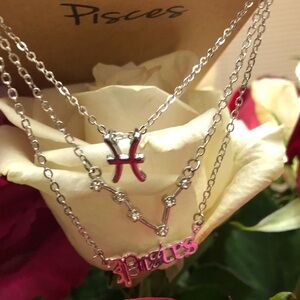 These three bright polished silver can be worn layered or individually. It comes packaged with a card outlining the characteristics of Pisces.