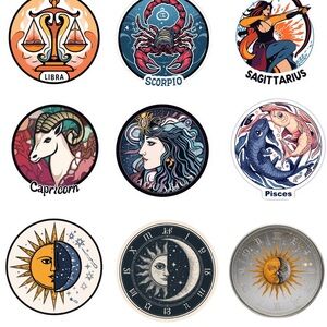 Perfect for astrology enthusiasts, these multicolor stickers add a unique touch to any celebration card. Each sticker is around 1-inch in size. 15 stickers in the set.