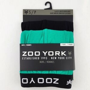 New with tags, Zoo York men's classic length boxer brief 2 pairs: 1 black, 1 teal/green, 95% cotton / 5% spandex. Size small.