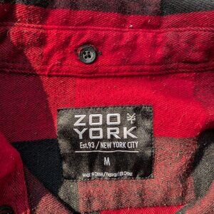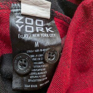 Zoo York Men’s Flannel Hoodie Shirt Jacket M Red Black Plaid Logo Sleeves