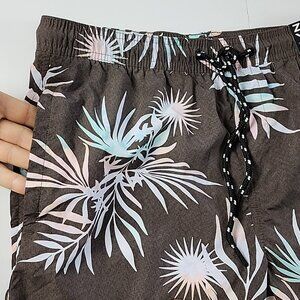 Zoo York Men's Lightweight Shorts Brown Tropical Print Elastic Waist Size Small