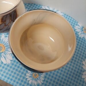 Zorza Hand-blown Opaque & Blue Art Glass Tealight/Bud Holders. Set of 2. Balloon-shaped with wide mouth on pedestal. Lovely blue/bronze resembles wings artfully mixed with the white opaque colouring. Can be used as candy dish. Pre-owned. Note one holder has 2 tiny nicks as shown in photo. Made in Poland. Approx 5" tall.