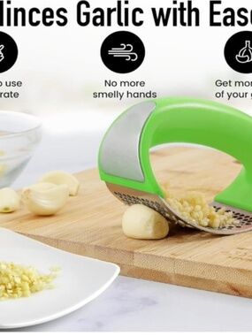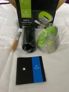 New in box! Elevate your kitchen game with this Zulay Kitchen Garlic Rocker-Press Set. This ergonomic tool makes mincing garlic faster and easier than traditional presses—perfect for home chefs who want fresh garlic without the smelly hands.