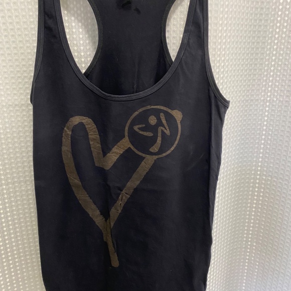 Black Zumba racer back Instructor top with gold colour writing. Sole L