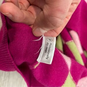 Zume Magenta Hot Pink Cashmere Sweater Short Sleeves Argyle Sweater