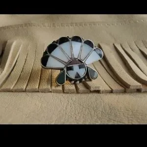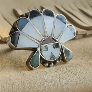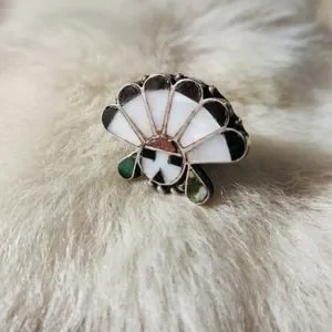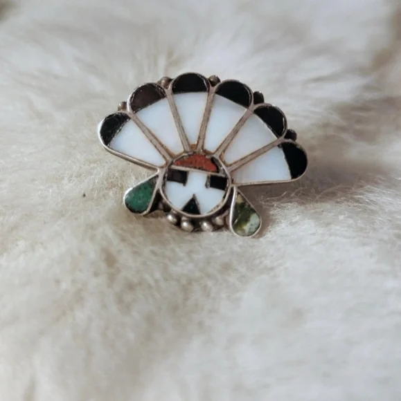 >>---> Beautiful Native American Vintage Zuni Signed Sunface Ring ♡ Sterling Silver / Onyx / Turquoise / Coral / Mop ♡